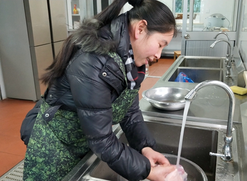 圖為大溪嶺隧道所用上了清澈的自來(lái)水 “之前,用水量緊張, 用水條件差,要拿勺子這么舀著洗,費(fèi)時(shí)費(fèi)力,現(xiàn)在終于不用再拿勺子盛水洗菜了,方便!”食堂阿姨笑瞇了眼。