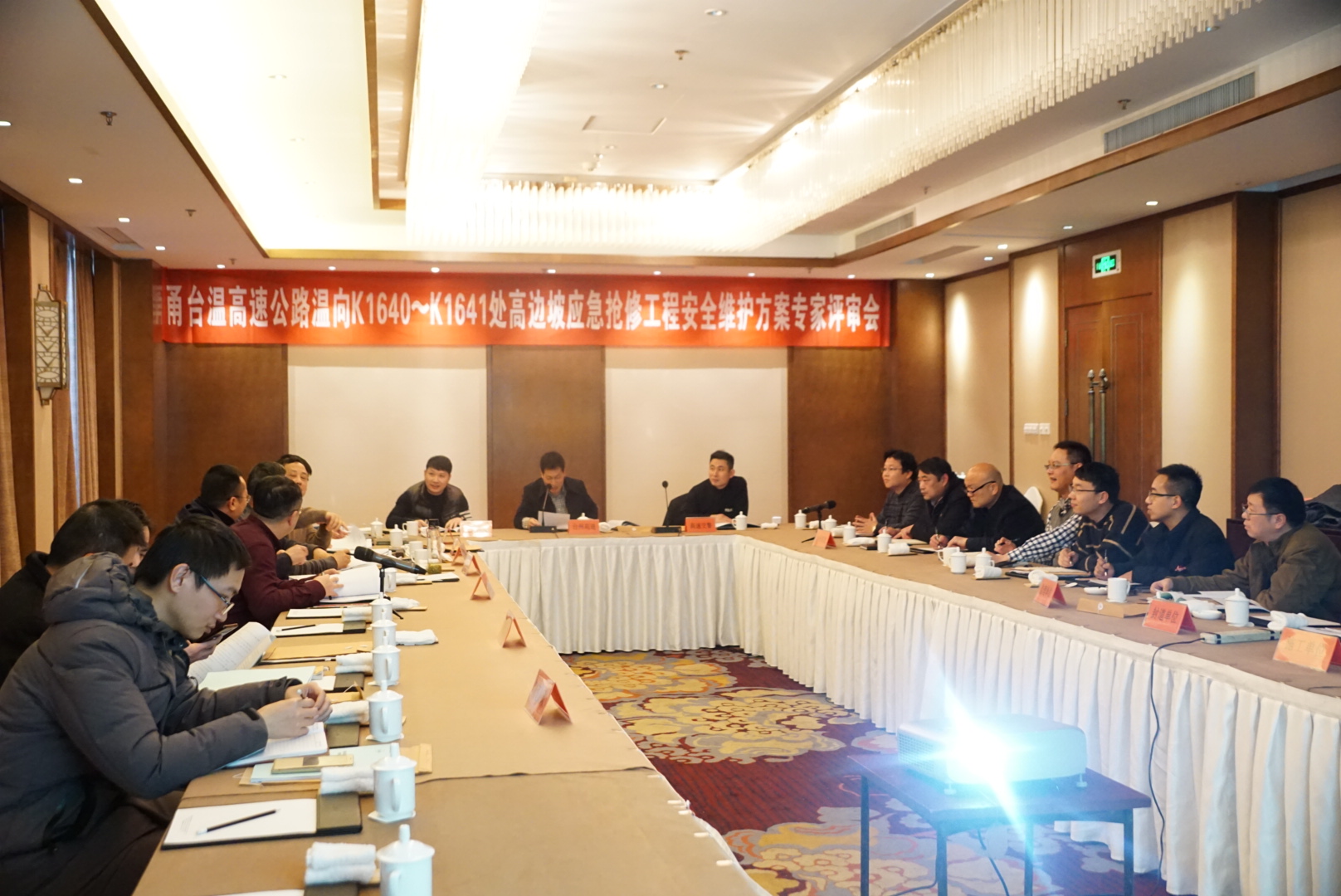 甬臺溫高速公路K1640-K1641處高邊坡應急搶險工程 安全維護方案評審會召開 3月6日下午,集團組織召開甬臺溫高速公路K1640~K1641處高邊坡應急搶險工程安全維護方案評審會。集團總工程師江輝主持會議。臺州市公路局、高速交警、施工、監(jiān)理、設計、封道公司、隧道所、安保部等單位、部門和特邀專家參加會議。