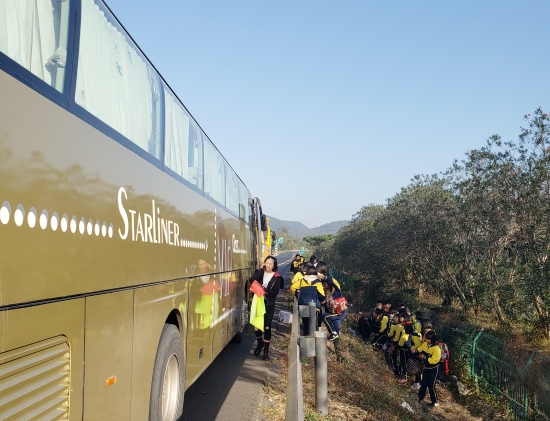 11月15日上午7點(diǎn)30分,一輛大客車(chē)在距離臨海南收費(fèi)所寧向5公里處拋錨,需要救援。 12分鐘后,施救中心人員趕到現(xiàn)場(chǎng),這是一輛載滿(mǎn)學(xué)生的大巴車(chē),拋錨在硬路肩。大巴車(chē)司機(jī)告訴救援人員,這是浙江省某實(shí)驗(yàn)中學(xué)的學(xué)生,在去往臨海研學(xué)的過(guò)程中,車(chē)輛忽然出現(xiàn)故障,車(chē)上有近三十名學(xué)生和兩個(gè)老師。