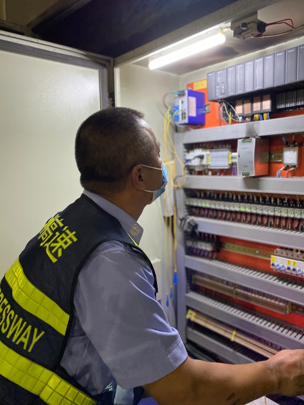 雖然隧道內(nèi)沒(méi)有烈日的灼燒,但日均4萬(wàn)的車(chē)流,加上尾氣排放,導(dǎo)致隧道內(nèi)的氣溫遠(yuǎn)高于室外。當(dāng)室外37°C時(shí),整個(gè)隧道里宛如一個(gè)蒸籠。盡管如此,廣場(chǎng)上、電纜溝上隨時(shí)都有執(zhí)勤隊(duì)員忙碌的身影。他們來(lái)回徒步穿梭于隧道,檢查指示燈、消防設(shè)備箱、緊急電話、火災(zāi)報(bào)警等設(shè)施設(shè)備,排查各類安全隱患,修復(fù)受損設(shè)備,處理各種突發(fā)情況。一趟下來(lái)臉和胳膊被熏得黝黑,口罩、衣服濕了又干、干了又濕,盡管工作量大、強(qiáng)度高,他們從不喊苦說(shuō)累。