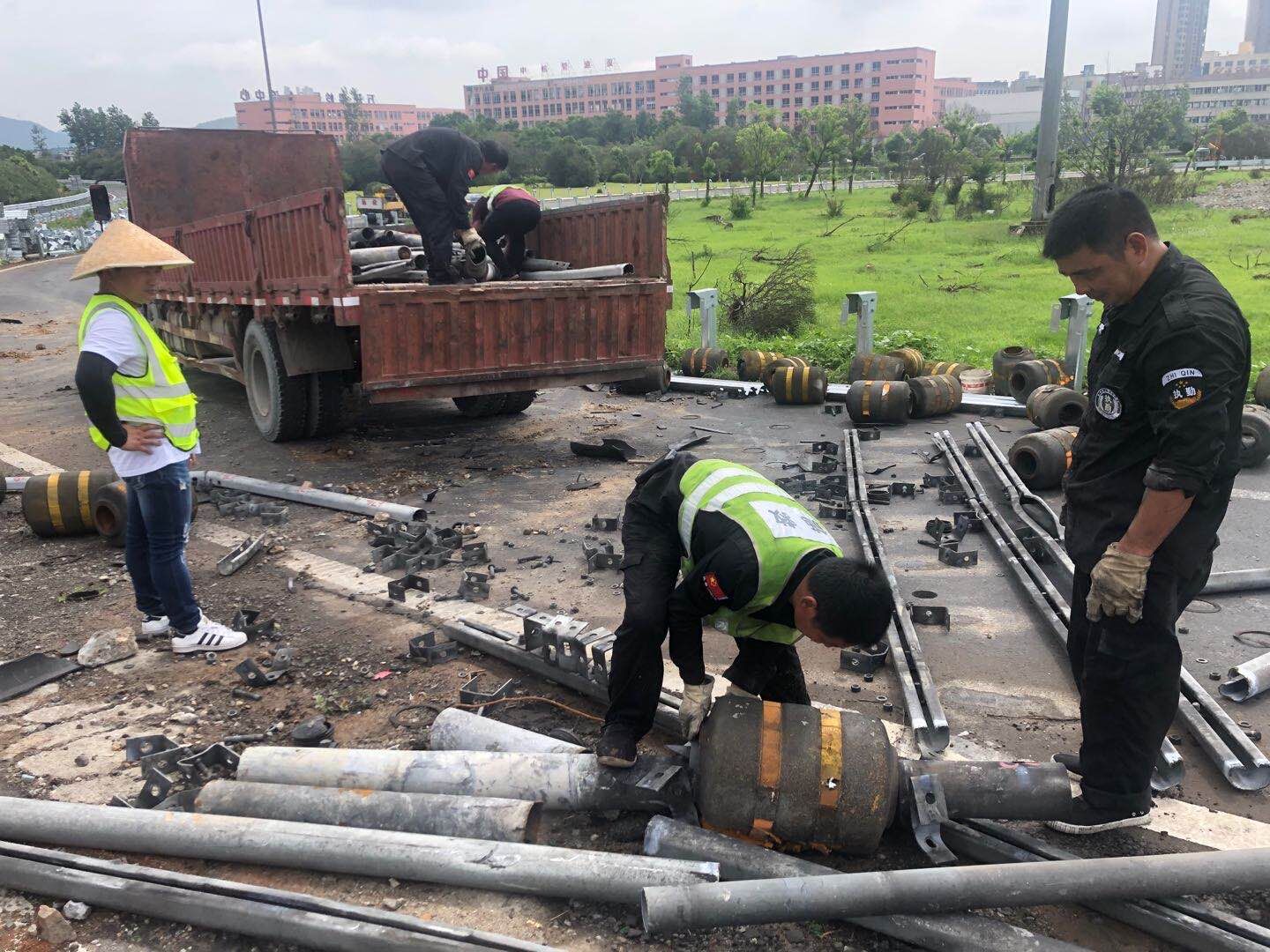 圖為各部門小組人員監(jiān)督現(xiàn)場 此次廢舊物資數(shù)量大,護欄板因高溫沖擊造成了強烈的扭曲變形,這無疑給裝載增加了難度。大家和裝載人員一起想辦法,以便更好地裝車安全抵達院橋磅秤站。盡管天氣燥熱、環(huán)境嘈雜,可絲毫未影響小組成員的工作熱情,因時間倉促,所有人利用午休時間加快工作進度,一直堅守現(xiàn)場。在趁車裝載間隙,兵分兩路,一隊現(xiàn)場盯裝車,另一隊由林軍帶領(lǐng)趕往塘嶺廣場、臺州收費所,對阻塊等廢舊物品進行勘察,隨后又馬不停蹄趕往院橋磅秤站匯合監(jiān)督過磅環(huán)節(jié)。 直至下午5點,大家終于結(jié)束工作。據(jù)統(tǒng)計,此次共處理廢棄物資約15噸。 毛譯聆