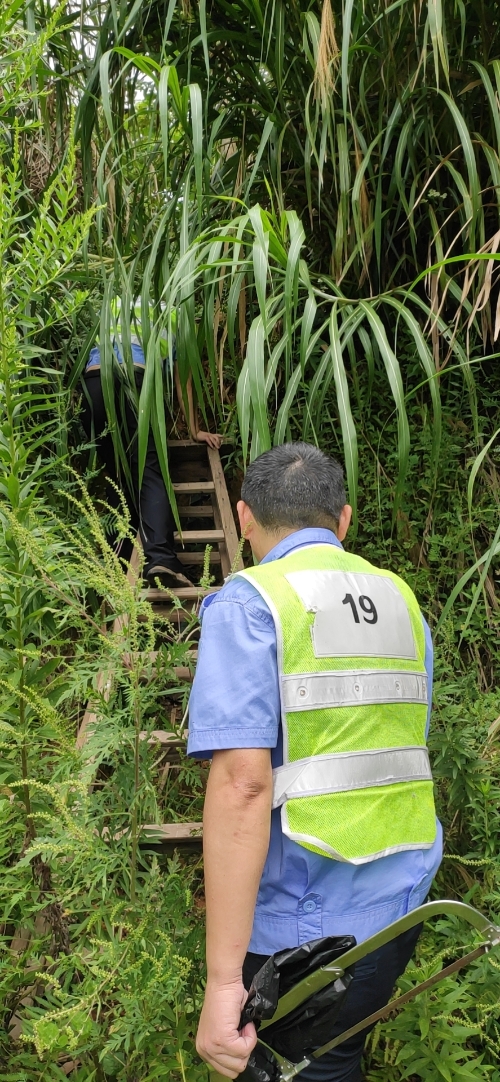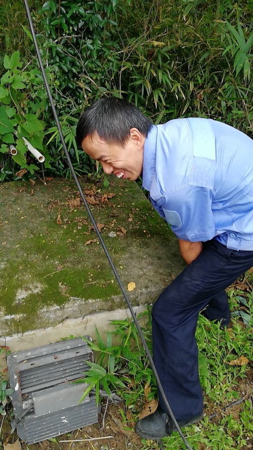 為保障隧道消防安全,中控對消防水池的水位需時(shí)時(shí)關(guān)注,萬一水池漏水無法及時(shí)查看,如遇火災(zāi),消防水供應(yīng)不上,后果不堪設(shè)想。隊(duì)長意識到事情的嚴(yán)重性,即刻安排電工湯寧光和陳幸趕往北面山上的高位水池位置。初秋的山上植物茂盛,原來通往水池的小路早已淹沒在雜草間,隊(duì)員們提著工具,憑著記憶找小路,單手撥開雜草往山上走,到達(dá)高位水池之后,他們分工協(xié)作,一邊檢查線路,一邊抬開井蓋水池檢查照明燈,經(jīng)過檢查后發(fā)現(xiàn)只是線路有點(diǎn)松動,陳幸馬上對線路進(jìn)行加固。