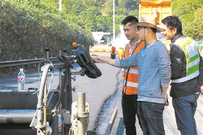 “路面銑刨時(shí)有時(shí)會(huì)出現(xiàn)銑刨不完全存在夾層的現(xiàn)象,如不清理干凈則會(huì)嚴(yán)重影響攤鋪后路面的平整度?!睏罱鹆航榻B道,所以攤鋪時(shí)每道工序,他都時(shí)刻緊盯,確保攤鋪的路面不存在任何瑕疵。