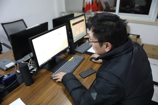 圖為胡斌正在給系統(tǒng)打升級補(bǔ)丁