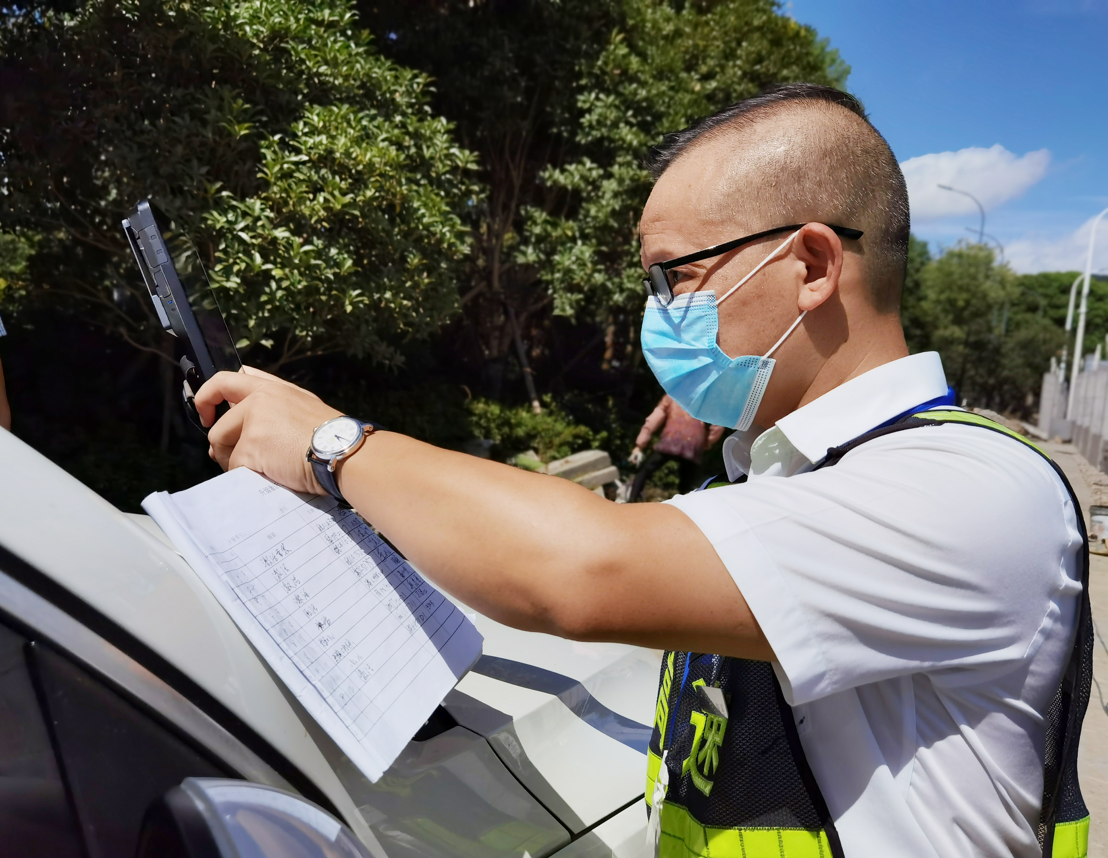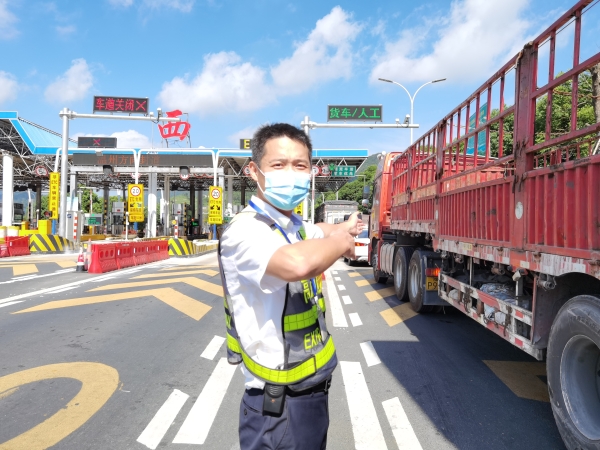 這是征費(fèi)四班班長(zhǎng)鄭星和駕駛員的對(duì)話,他手持iPad,不停地在屏幕上滑動(dòng)著、查詢著。天氣炎熱,貨車開車時(shí)較為顛簸,3M膠軟化黏不牢,ETC設(shè)備容易脫落。ETC設(shè)備一旦掉落,會(huì)提示“標(biāo)簽已失效”,就無法正常工作,不能實(shí)現(xiàn)不停車出入高速公路ETC車道,給來往司機(jī)和收費(fèi)人員增添了很多麻煩。為全力配合ETC服務(wù)需要,鄭星冒著酷暑高溫,不厭其煩幫著司乘人員解決問題,一天下來工作服濕了又干,干了又濕,他就是臺(tái)州高速上的最美堅(jiān)守者。