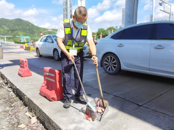 烈日灼燒著大地,高速兩邊的樹葉都被曬得打了卷,悶熱的空氣讓人喘不過氣來,在溫嶺西收費(fèi)站,不少司乘人員在站時(shí),隨手將食品的塑料袋、煙頭、塑料瓶等垃圾丟棄在收費(fèi)站出口處,班長(zhǎng)陳軍見到隨時(shí)清掃路面,保持收費(fèi)區(qū)域衛(wèi)生干凈整潔。彎腰、清掃、起運(yùn),看似簡(jiǎn)單的一組動(dòng)作,陳軍每天要重復(fù)幾十次,衣服一天不知要被汗?jié)穸嗌俦椋?/span>但他堅(jiān)持以良好的形象展示臺(tái)州高速的精神風(fēng)貌。他就是臺(tái)州高速上的最美堅(jiān)守者。