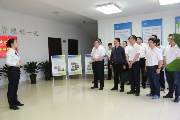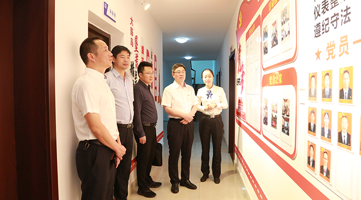 圖為陳文波一行觀摩廉政文化長(zhǎng)廊