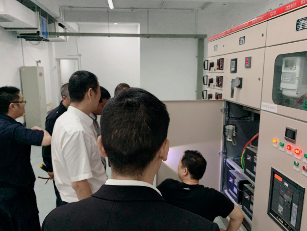 圖為多方合力查找問題現(xiàn)場 5月23日,電力公司上門檢修,告知配電房及電路問題一切正常。面對空調(diào)正常、電路正常的報告,展廳內(nèi)又嘗試開啟空調(diào),但10分鐘左右高壓又跳閘。即將進(jìn)入炎熱的夏季,房產(chǎn)銷售展廳內(nèi)不能缺少空調(diào)。 房產(chǎn)公司求援于工程部機電設(shè)備維養(yǎng)中心,5月28日,葉俊等四名專業(yè)電力人員,以及大溪嶺隧道所金衛(wèi)軍赴銷售廳對電力問題進(jìn)行現(xiàn)場勘察,經(jīng)仔細(xì)梳理、剖析,得出結(jié)論后反饋給電力部門,電力部門采納建議后第二次派人前來整改,歷史遺留電力問題終于徹底排除。 鄭攀