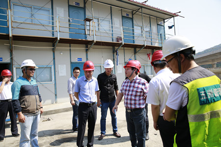 圖為集團副董事長、總經(jīng)理張建平檢查內(nèi)環(huán)路8#立交民工生活區(qū)