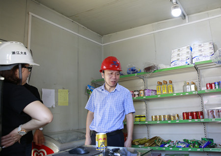 圖為集團副董事長、總經(jīng)理張建平檢查內(nèi)環(huán)北路(江口段)民工食堂