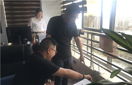 圖為檢查門窗 臺風(fēng)來臨期間,市政公司要求員工手機(jī)保持暢通,盡量在公司或者家里不要外出,確保人身和財(cái)產(chǎn)的安全,避免不必要的傷害和損失。 徐夢燁